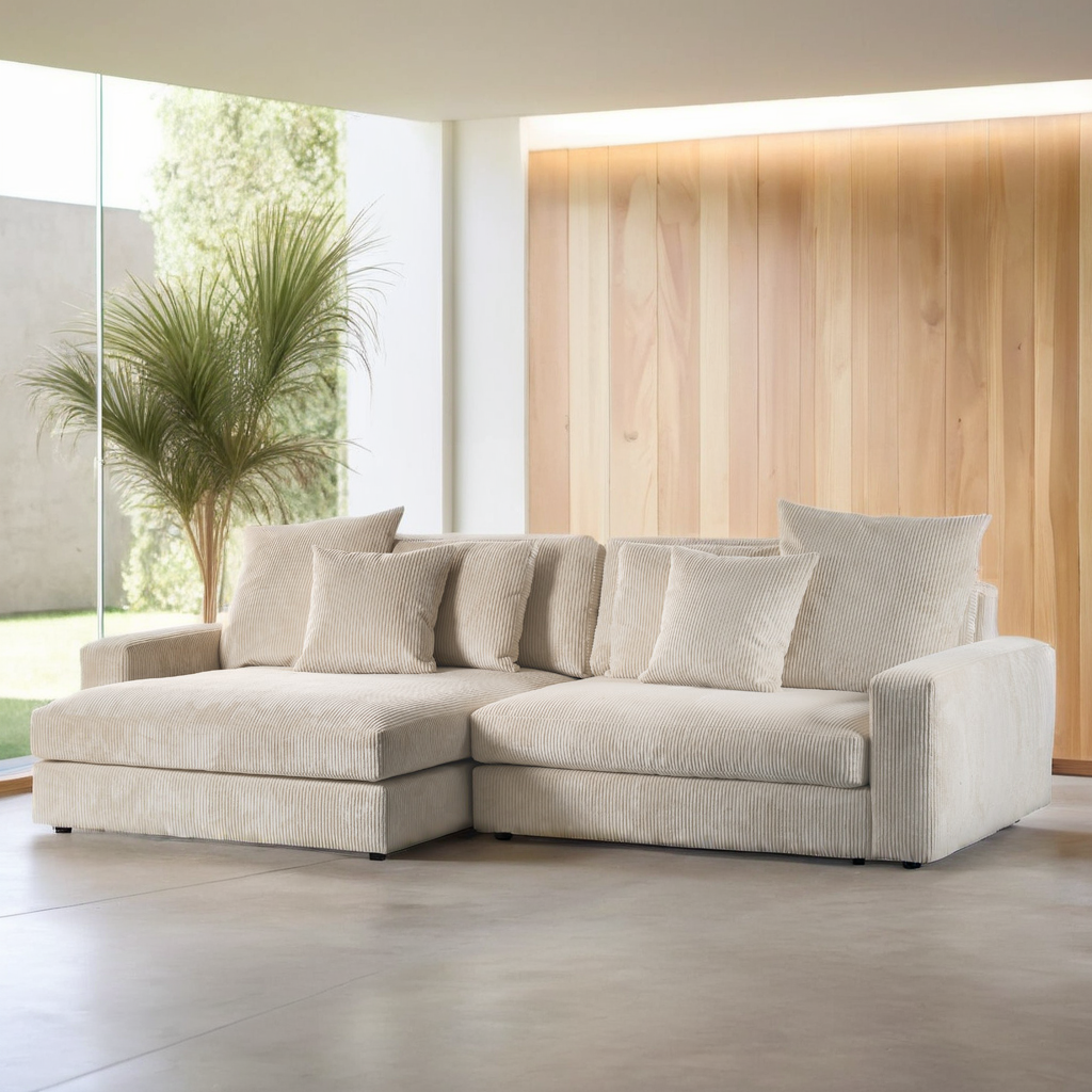 Met zijn zachte Lincoln 83-stof in natuurlijke tinten en praktische linker- of rechteruitlijning, past hij moeiteloos in verschillende interieurstijlen.