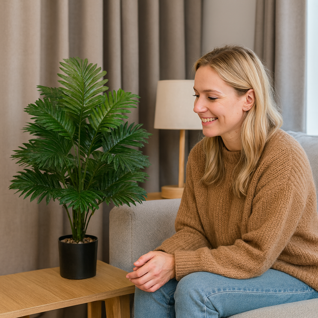 De kunstplant Amara tilt jouw interieur naar een hoger niveau met een indrukwekkend, natuurgetrouw bladerendecor. Geen verwelking, geen verzorging, alleen blijvende rust en elegantie in huis.