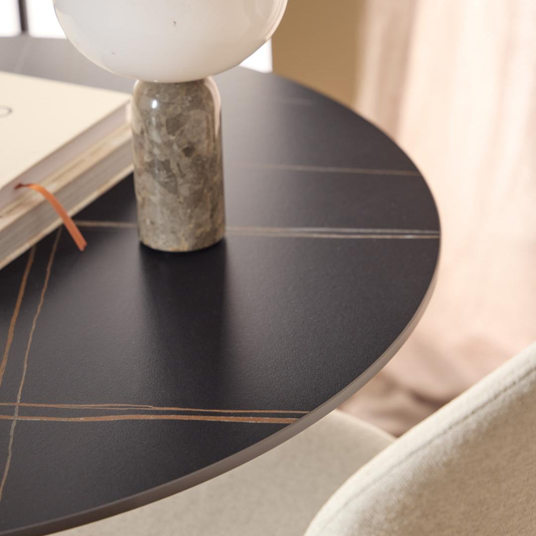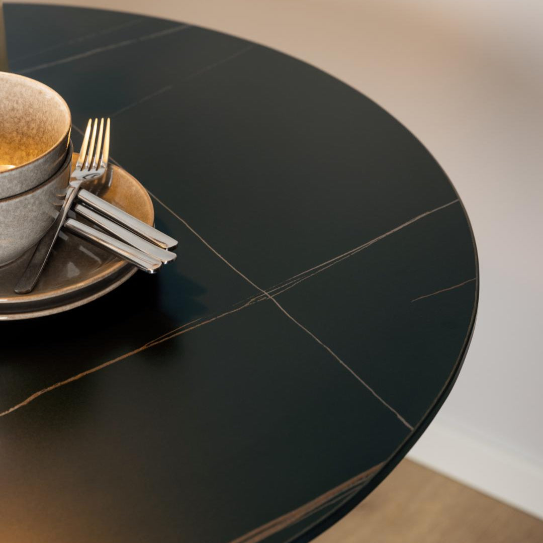 Minimalistisch & krachtig: Het ronde, zwarte blad van keramiek straalt luxe uit en is tegelijkertijd krasbestendig en onderhoudsvriendelijk.