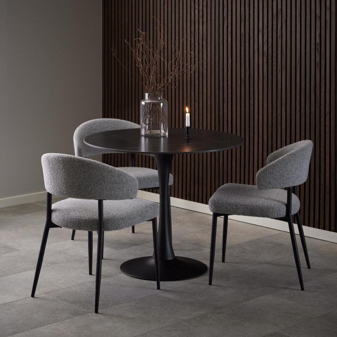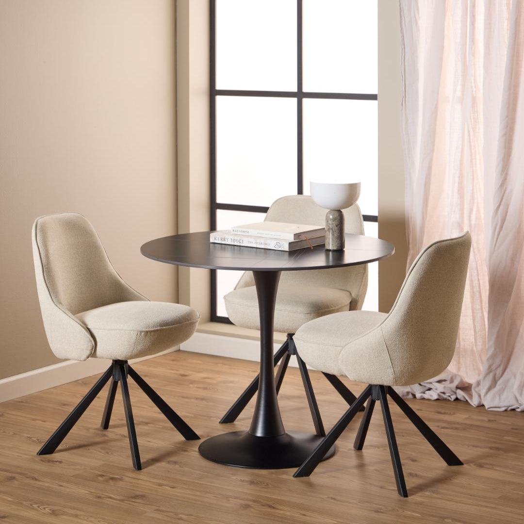 Perfect formaat: Met een diameter van 90 cm biedt hij ruimte voor 2 tot 4 personen — ideaal voor compacte eethoeken of als stijlvolle bistrotafel.