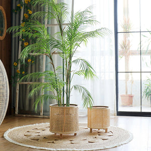 Deze stijlvolle plantenstandaarden van bamboe en rotan zorgen voor een warme, luchtige uitstraling in elk interieur. Het open geweven design combineert ambacht met modern minimalisme en zet jouw favoriete planten letterlijk in de spotlight.