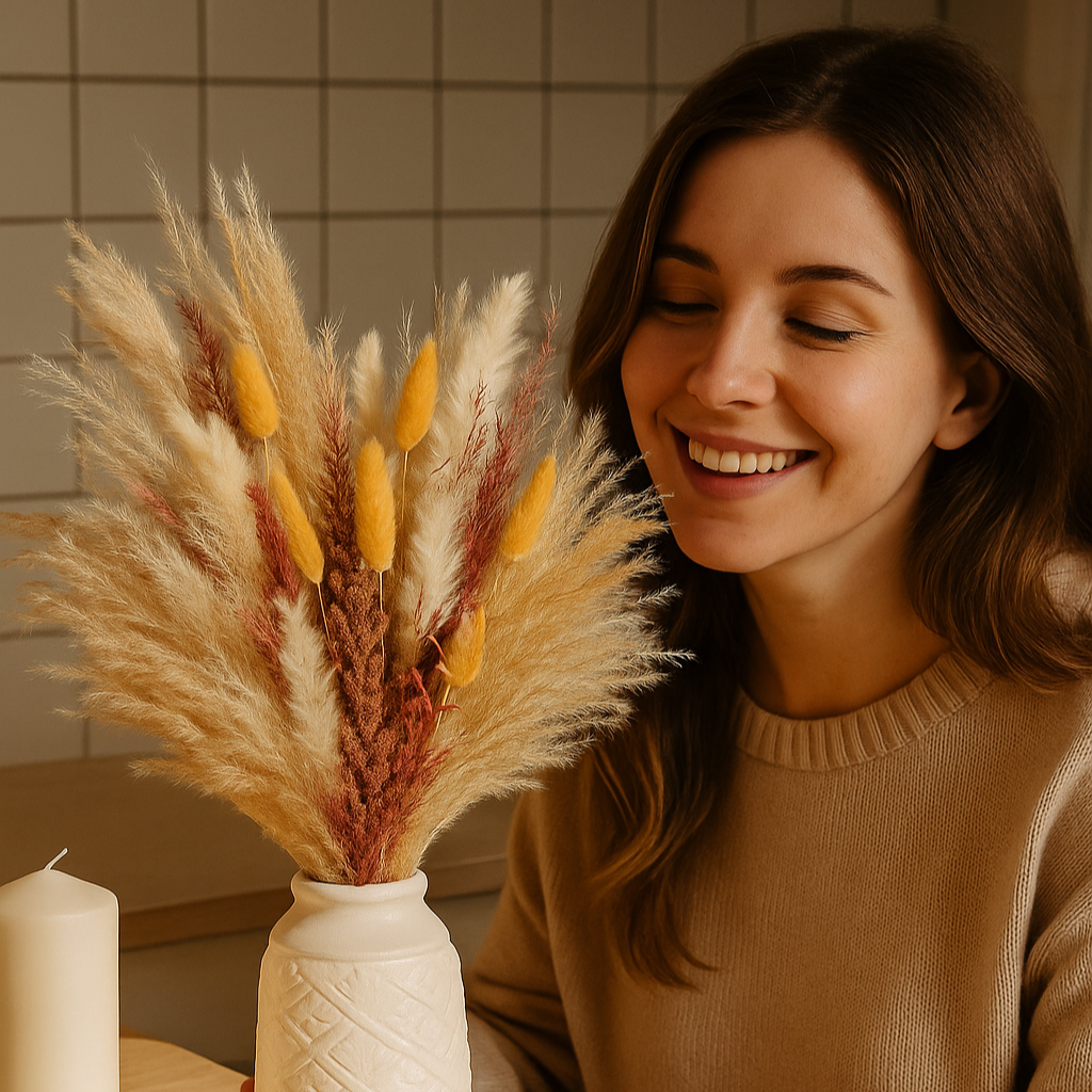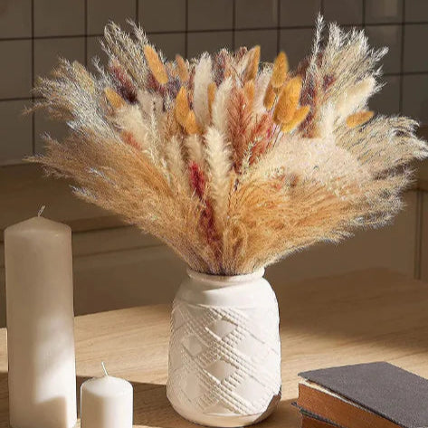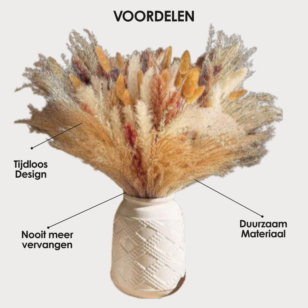 De droogbloemen Bohemia brengen rust en elegantie in huis, zonder ooit te verwelken of hun charme te verliezen. Een duurzame keuze voor wie sfeer wil zónder gedoe.