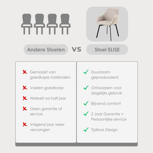 Investeer in luxe die blijft. Ontdek de Elise Eetkamerstoel en ervaar het verschil.