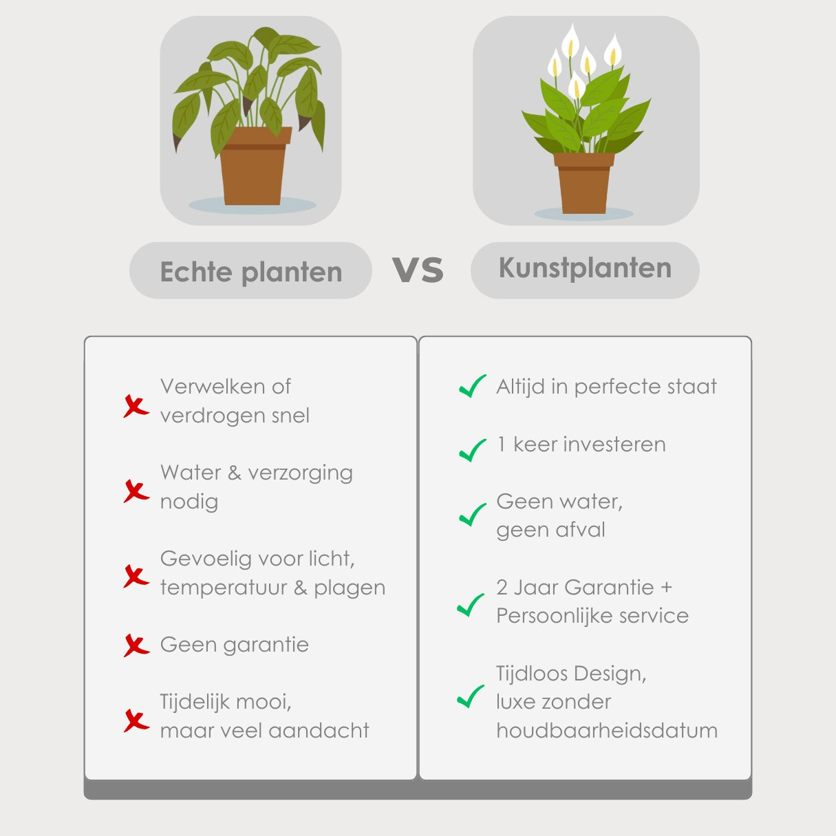 Onderhoudsvrij: Geen water of zonlicht nodig – altijd groen en fris.