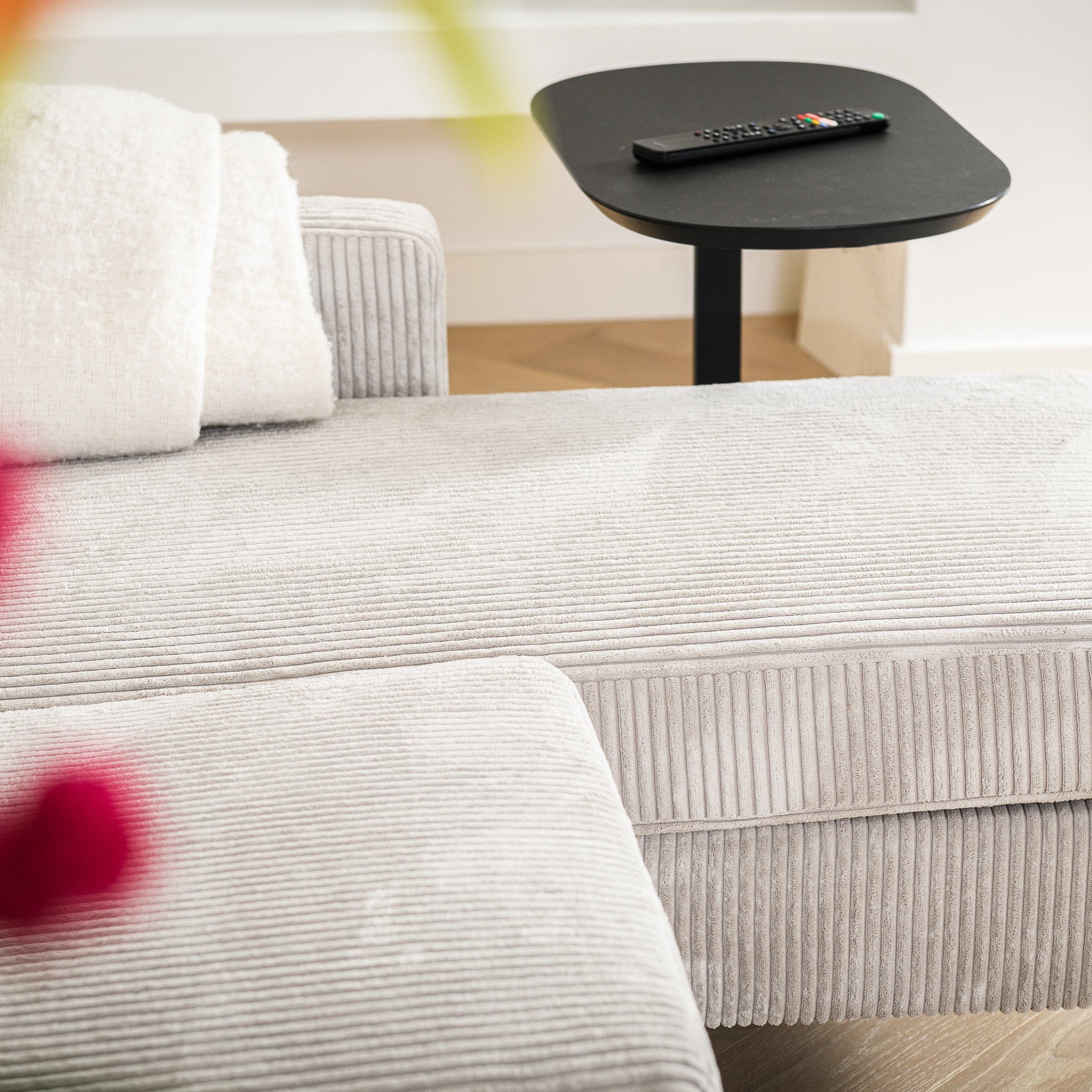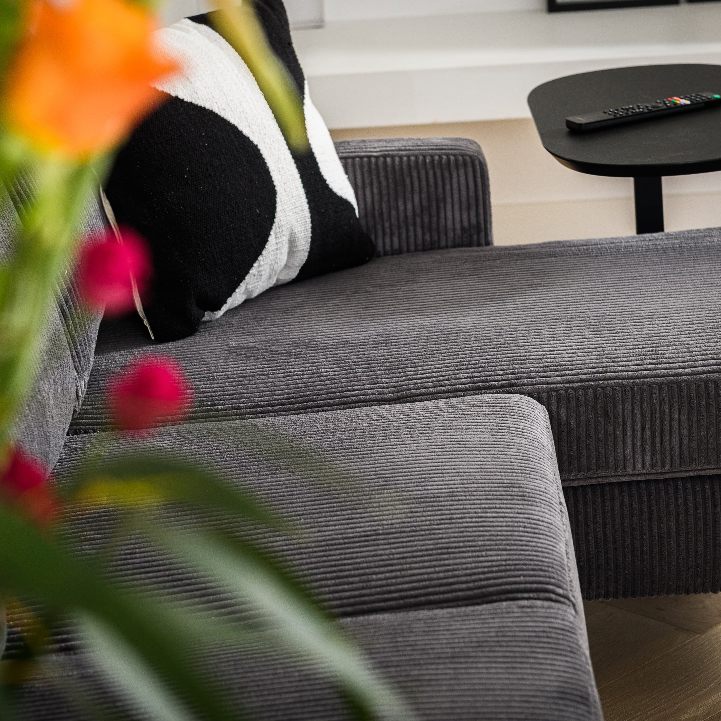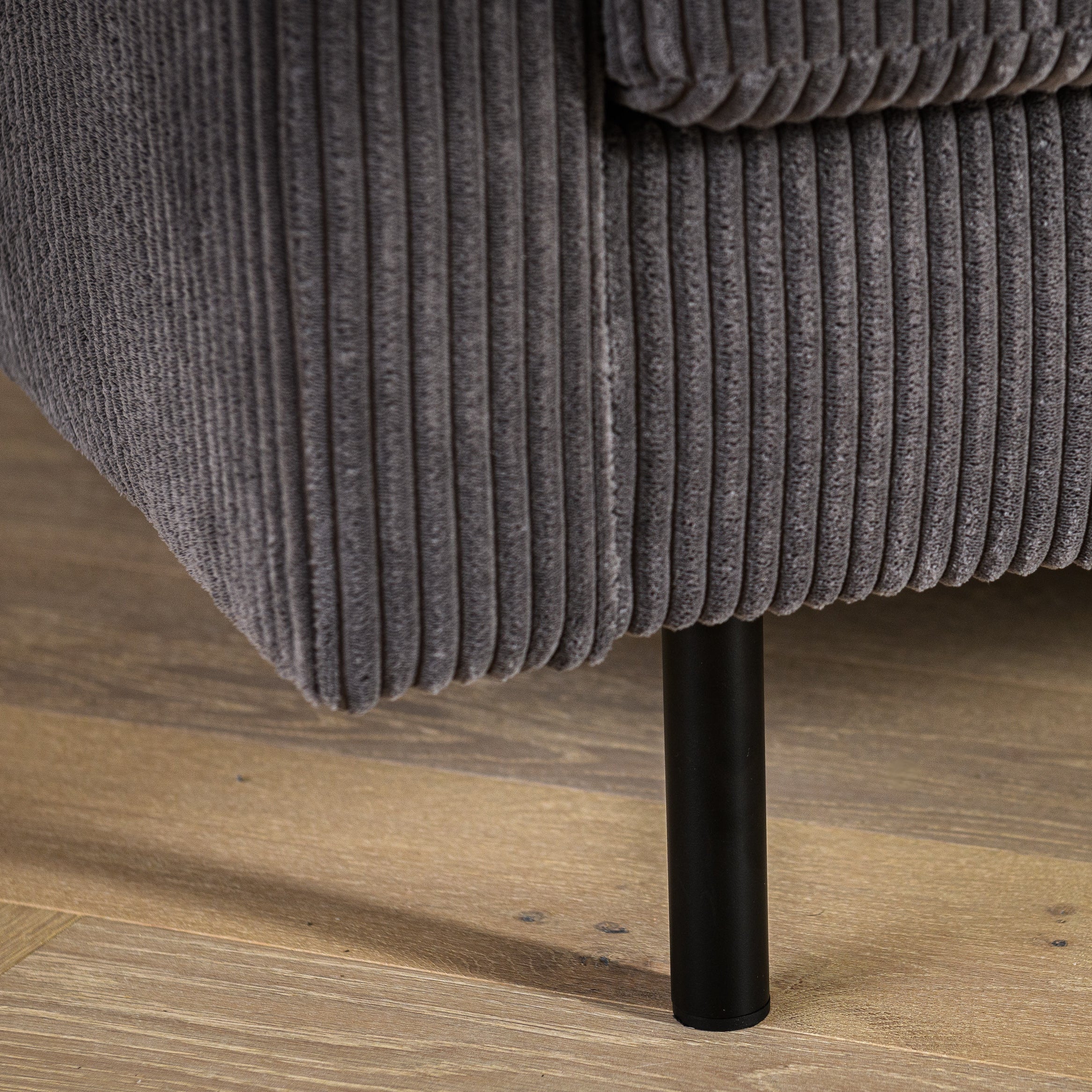 De Isabel bank combineert luxe ribstof met een strak, modern design voor een verfijnde uitstraling. De stalen poten zorgen voor een stevige basis, terwijl de zachte bekleding uitnodigt tot ontspannen. Beschikbaar in de stijlvolle kleuren antraciet en naturel, met een linker- of rechteruitlijning, zodat deze perfect aansluit op jouw interieur.