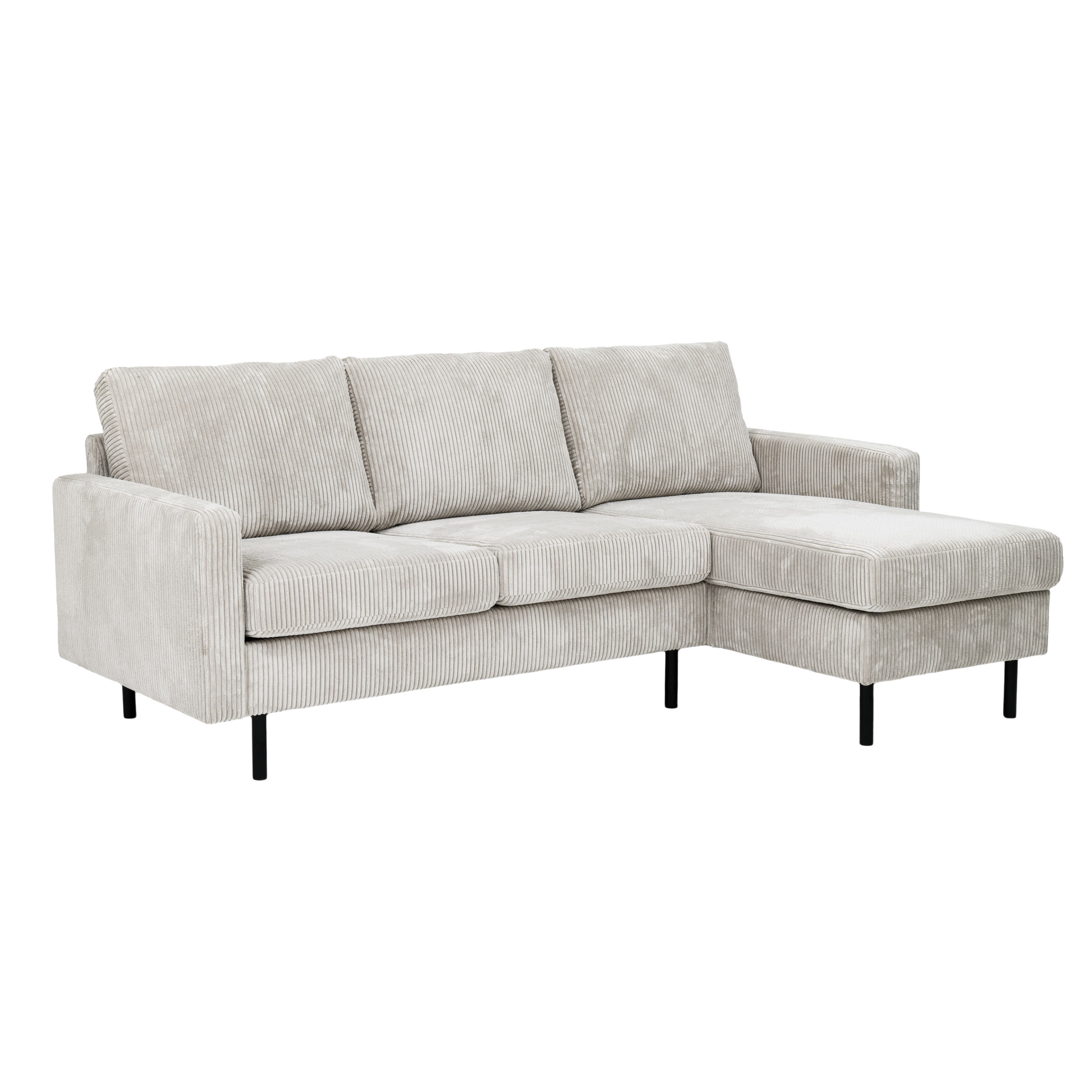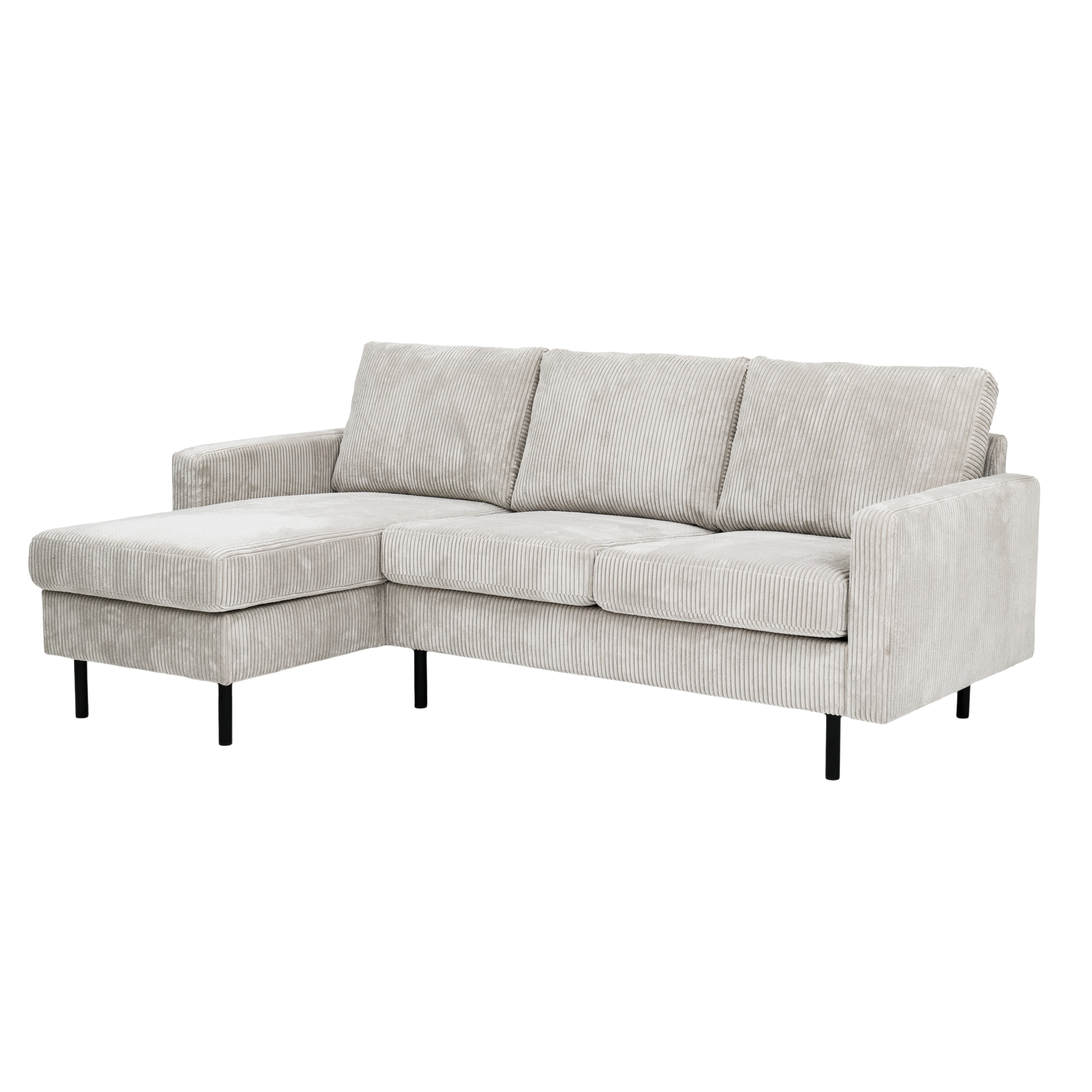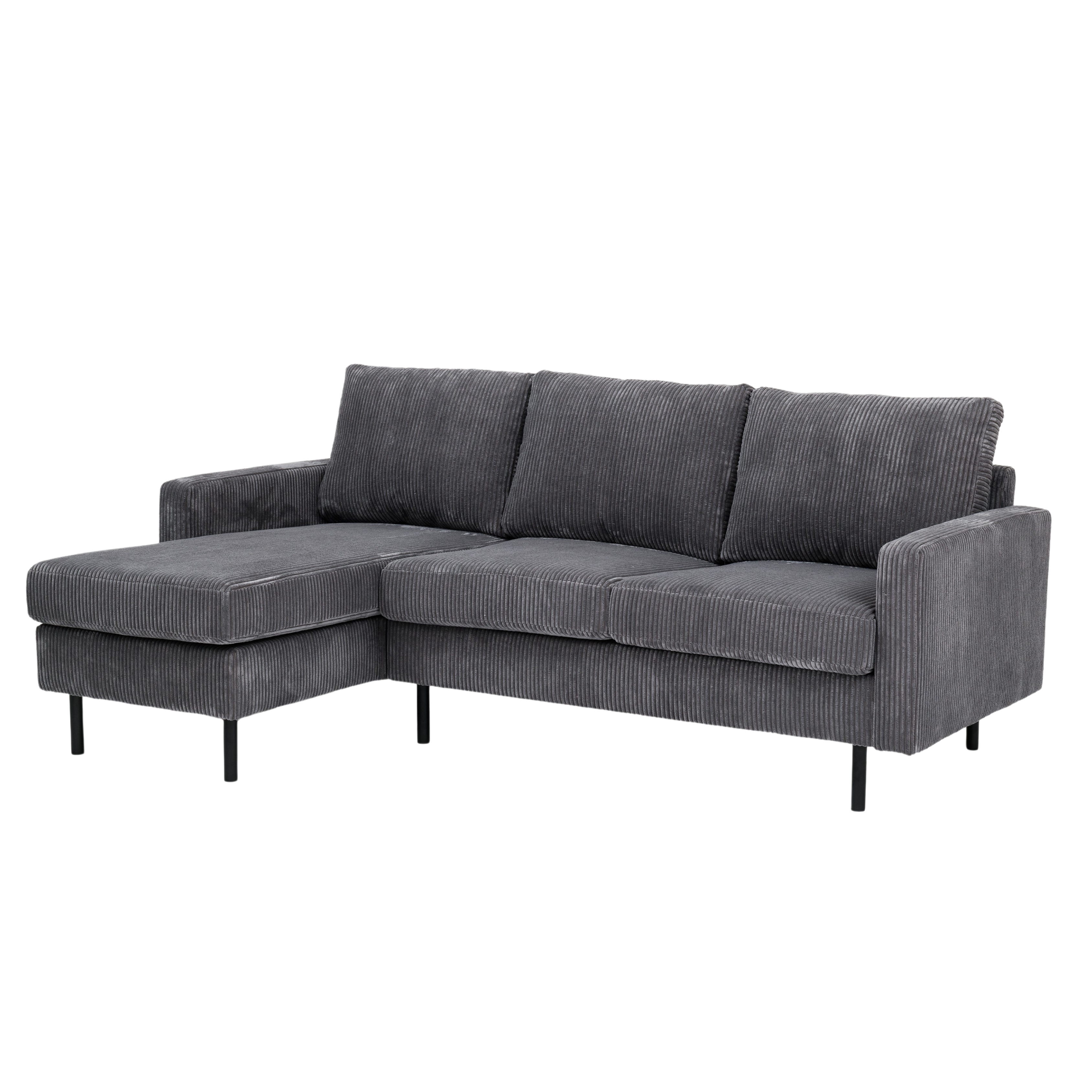 De Isabel bank combineert luxe ribstof met een strak, modern design voor een verfijnde uitstraling. De stalen poten zorgen voor een stevige basis, terwijl de zachte bekleding uitnodigt tot ontspannen. Beschikbaar in de stijlvolle kleuren antraciet en naturel, met een linker- of rechteruitlijning, zodat deze perfect aansluit op jouw interieur.