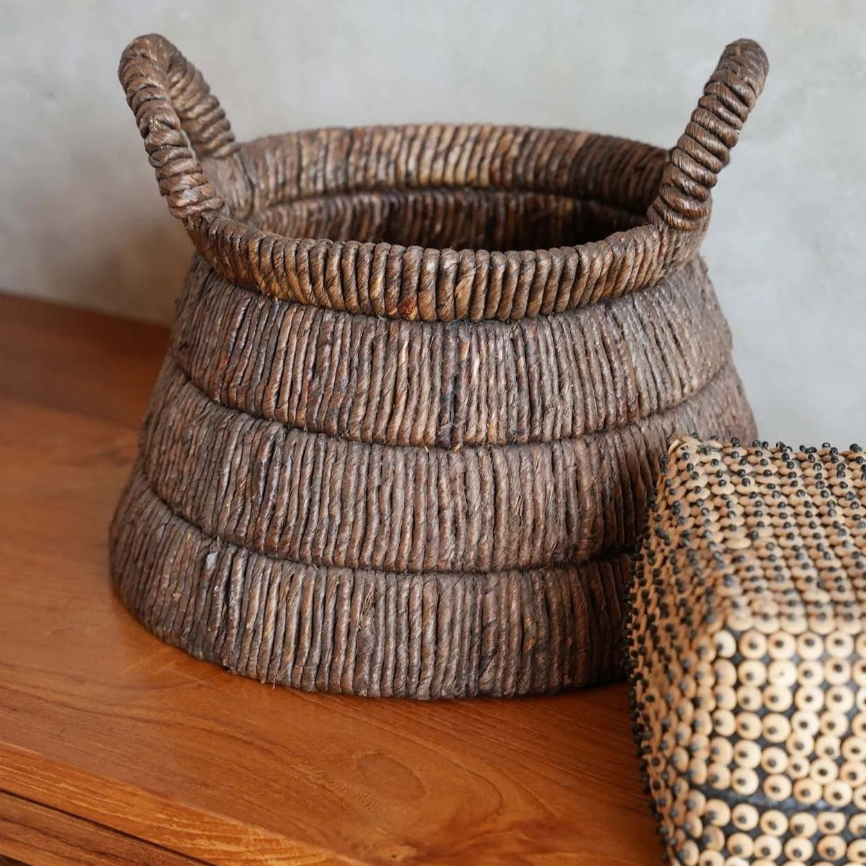 Ambachtelijk gevlochten: Handgemaakt van gedroogd bananenblad in een verfijnd patroon dat vakmanschap ademt.