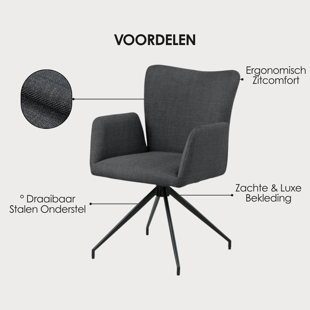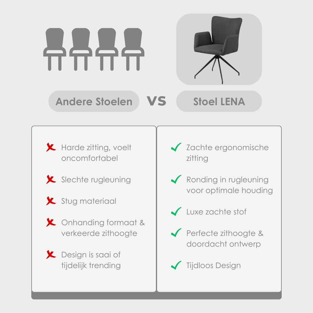 Kies voor dagelijks comfort met een stijlvolle twist. De Lena Eetkamerstoel is gemaakt om jarenlang mee te gaan.