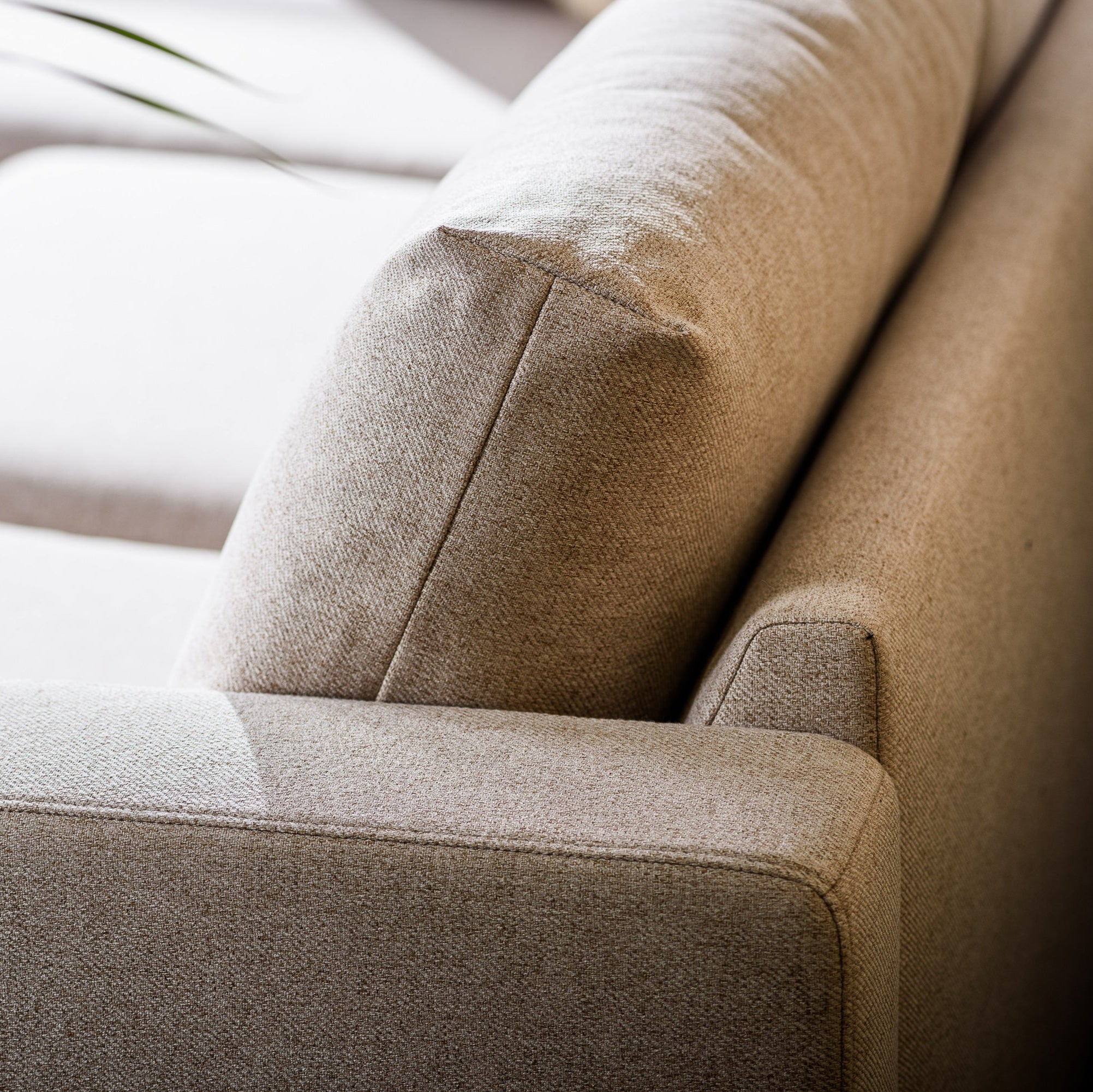 De Lourdes bank combineert moderne elegantie met ongeëvenaard comfort. De zachte Cloe-stof voelt heerlijk aan, terwijl de robuuste stalen poten een tijdloze uitstraling geven. Kies uit de stijlvolle kleuren beige of grijs en bepaal zelf de perfecte opstelling met een linker- of rechteruitlijning.