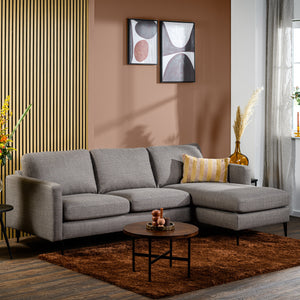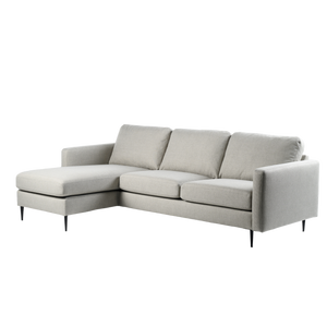 De Marta bank combineert een verfijnd design met de warmte van woven stof, waardoor deze een stijlvolle en knusse uitstraling heeft. De robuuste stalen poten zorgen voor een moderne touch en stevigheid, terwijl de zachte bekleding garant staat voor een heerlijk zitcomfort. Verkrijgbaar in beige en taupe, en met een linker- of rechteruitlijning, zodat hij naadloos aansluit op jouw interieur.