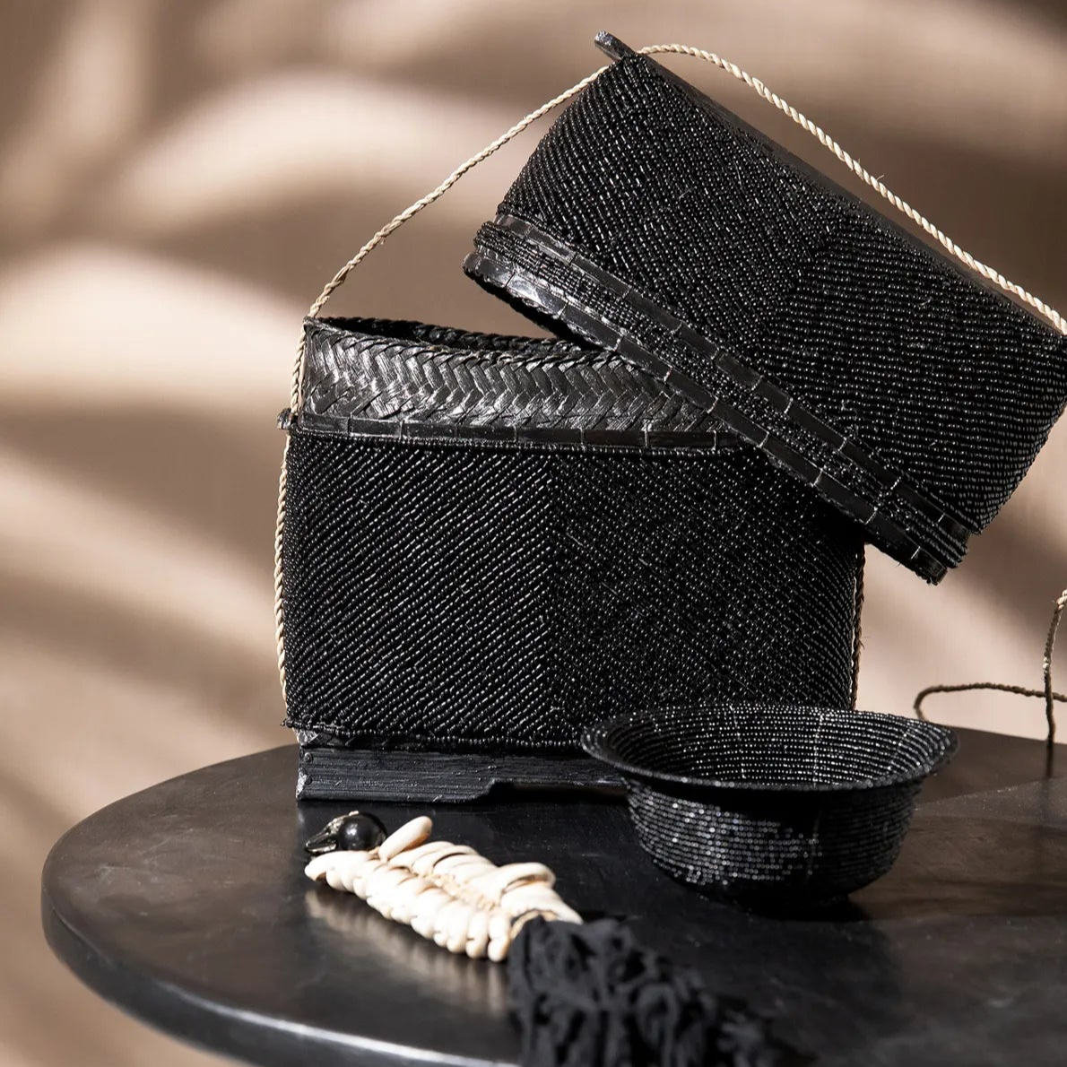 De Mavi mand combineert verfijnde charme met praktische opbergruimte. Met haar met de hand aangebrachte kralen is Mavi niet zomaar een opbergdoos, maar een subtiel sieraad voor elk interieur.