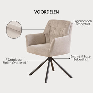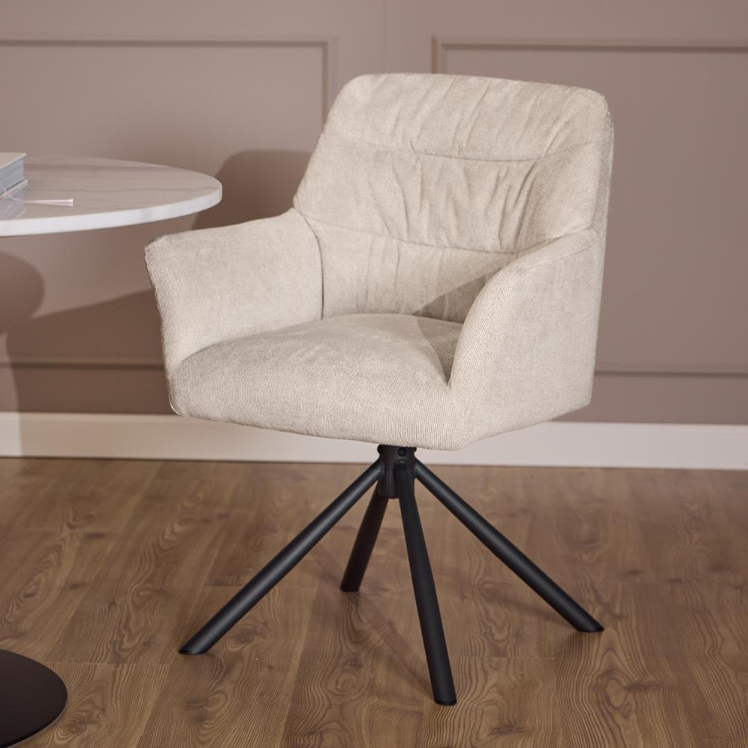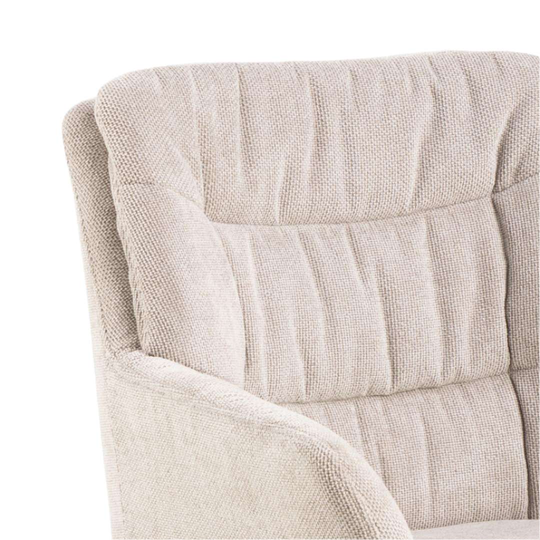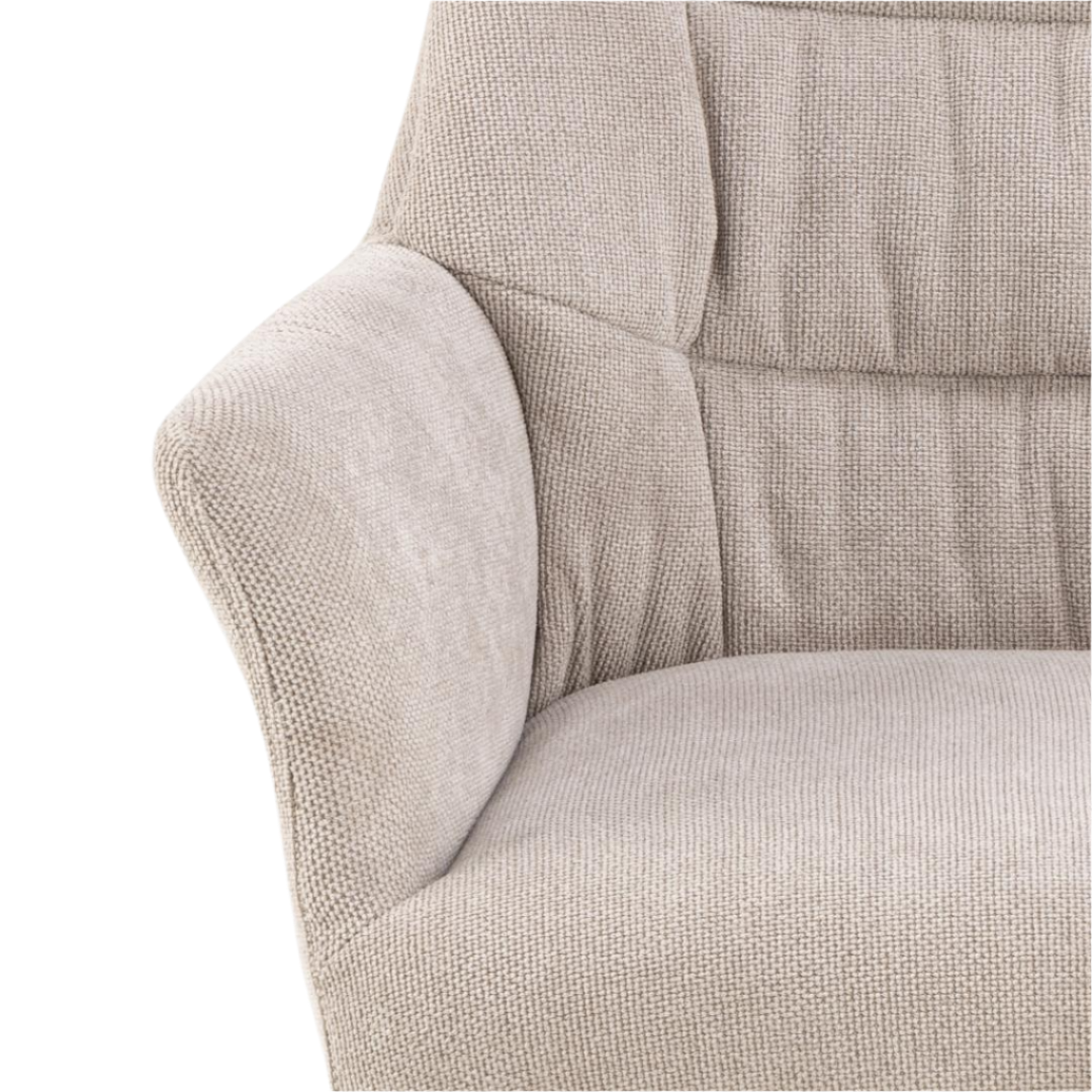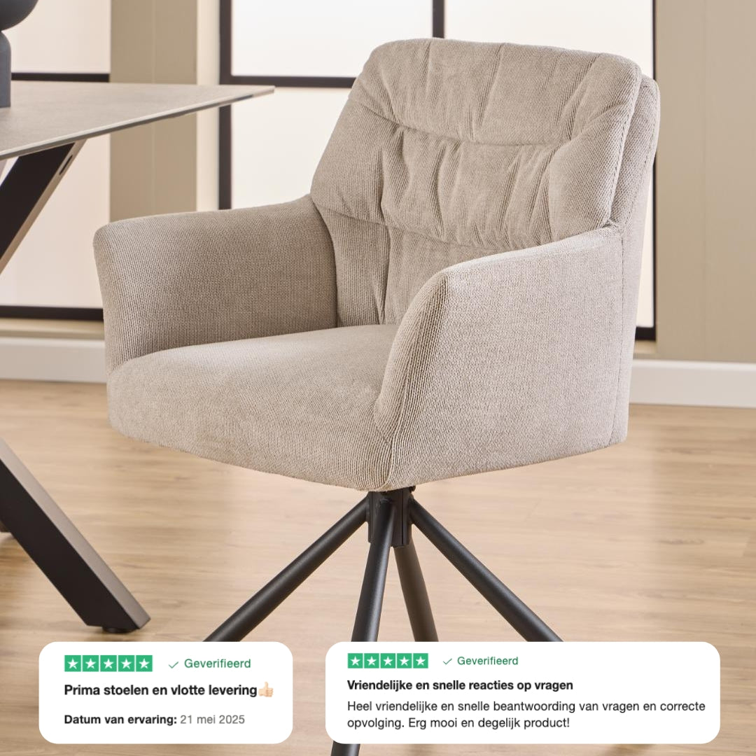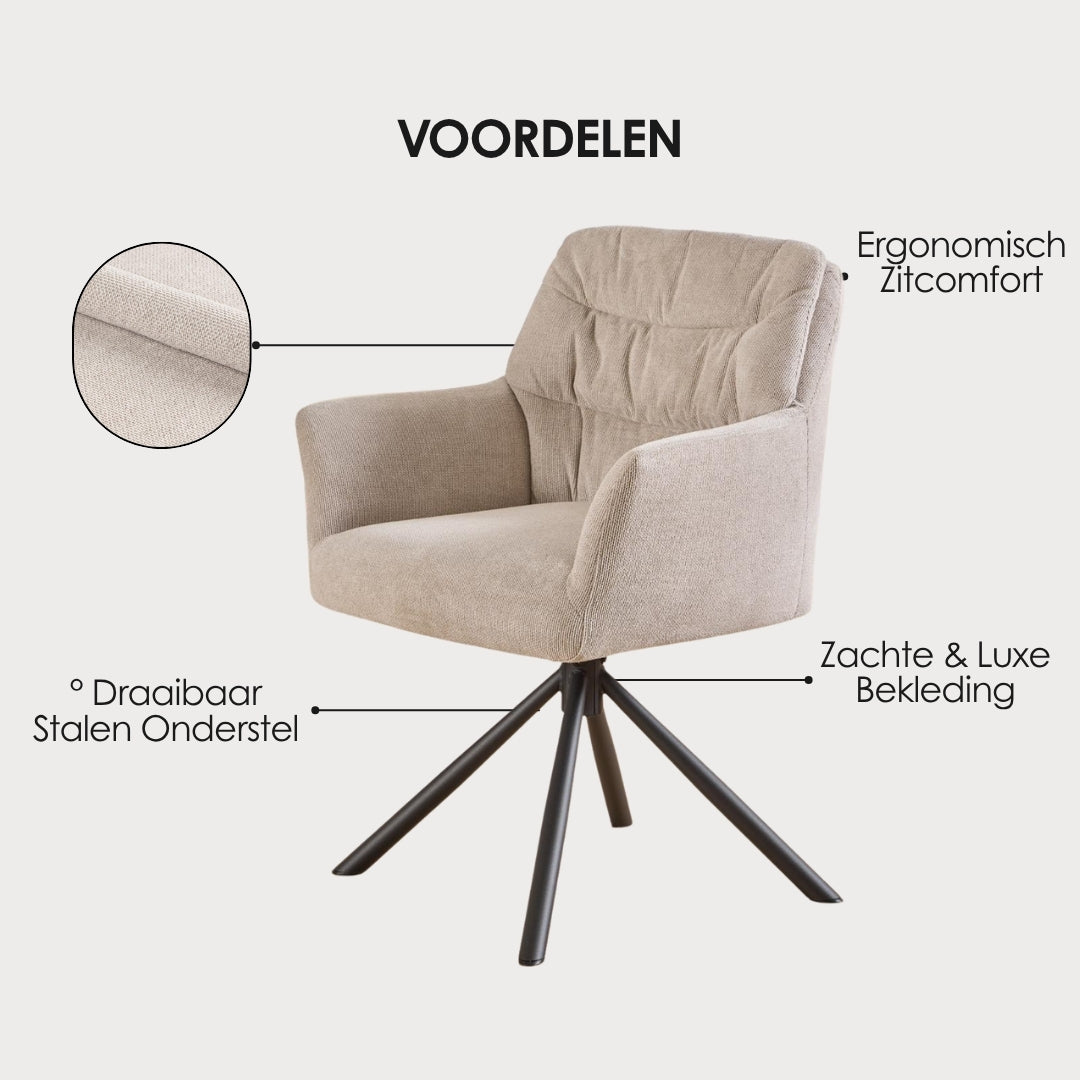 Met zijn zachte, hoogwaardige bekleding, strakke belijning en slimme draaivoet brengt Noah verfijnde elegantie en optimaal zitgemak samen — elke dag opnieuw.