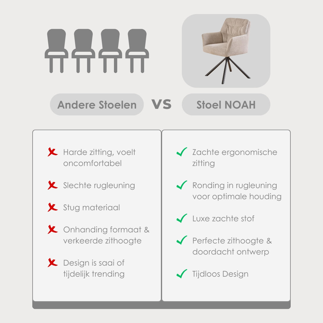 Ervaar hoe doordacht design en ultiem comfort elkaar versterken. De Noah Eetkamerstoel maakt elke zit bijzonder.