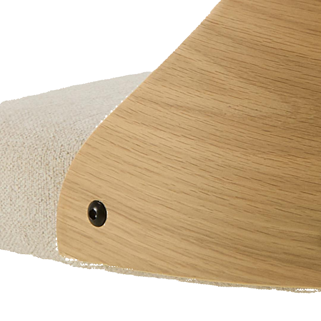 • Massief ogende rugleuning in eikenfineer: tijdloos, stijlvol en afgewerkt met lak