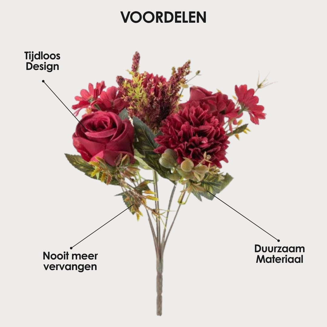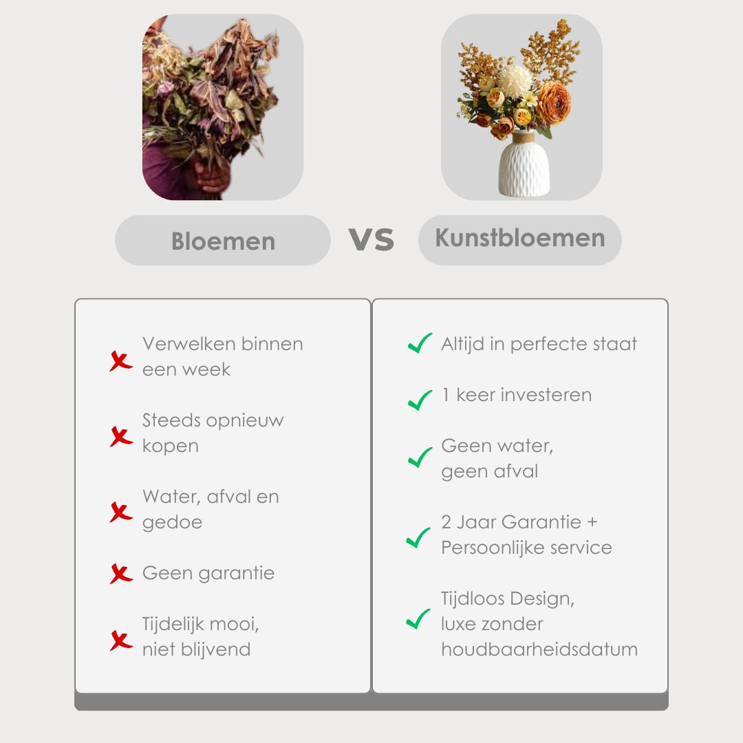 Breng ieder seizoen tot leven met een zorgvuldig samengestelde selectie luxe kunstbloemen, afgestemd op het moment van het jaar. Zonder verwelking en zonder gedoe!