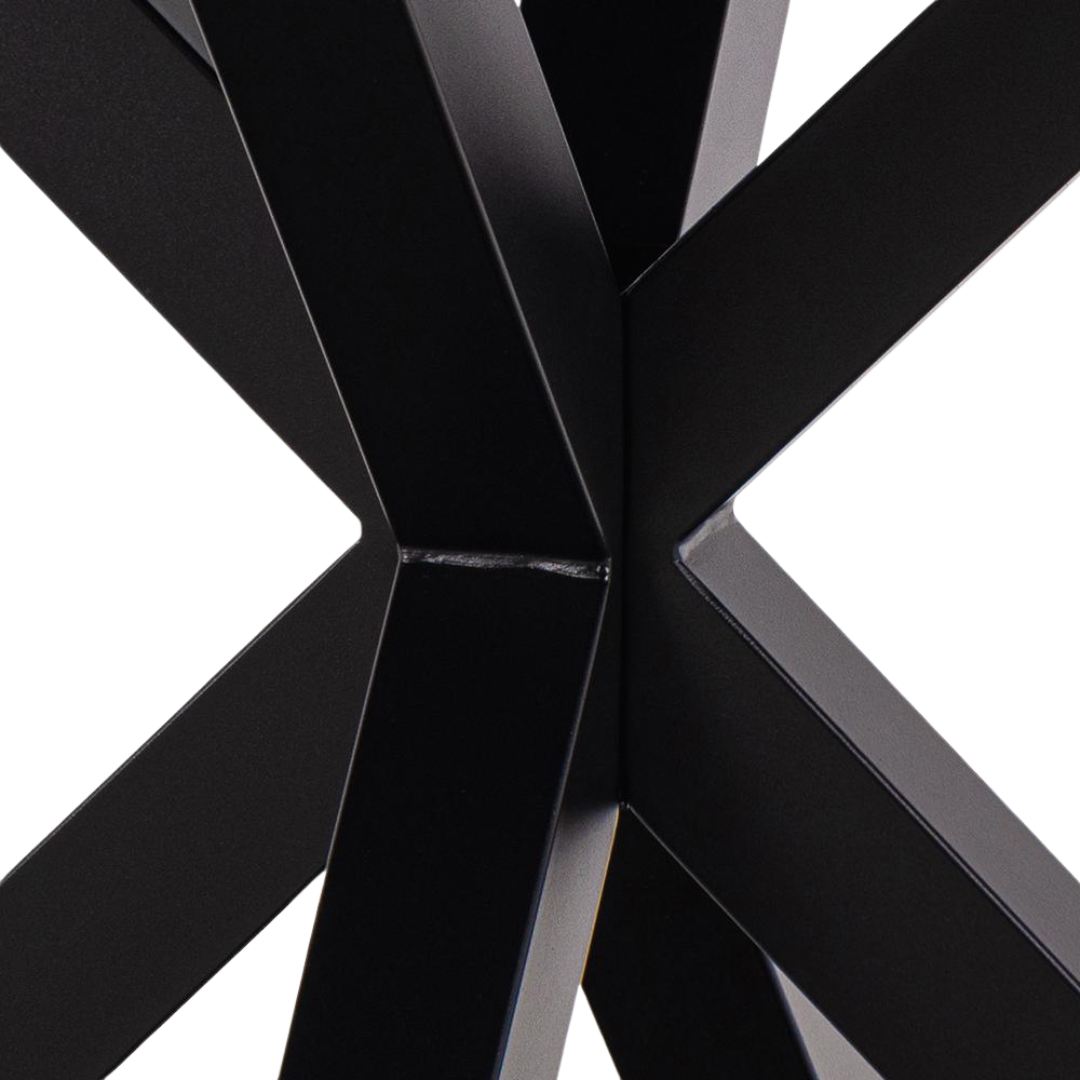 Sculpturaal design: De zwarte stalen pootconstructie geeft een moderne, krachtige uitstraling.