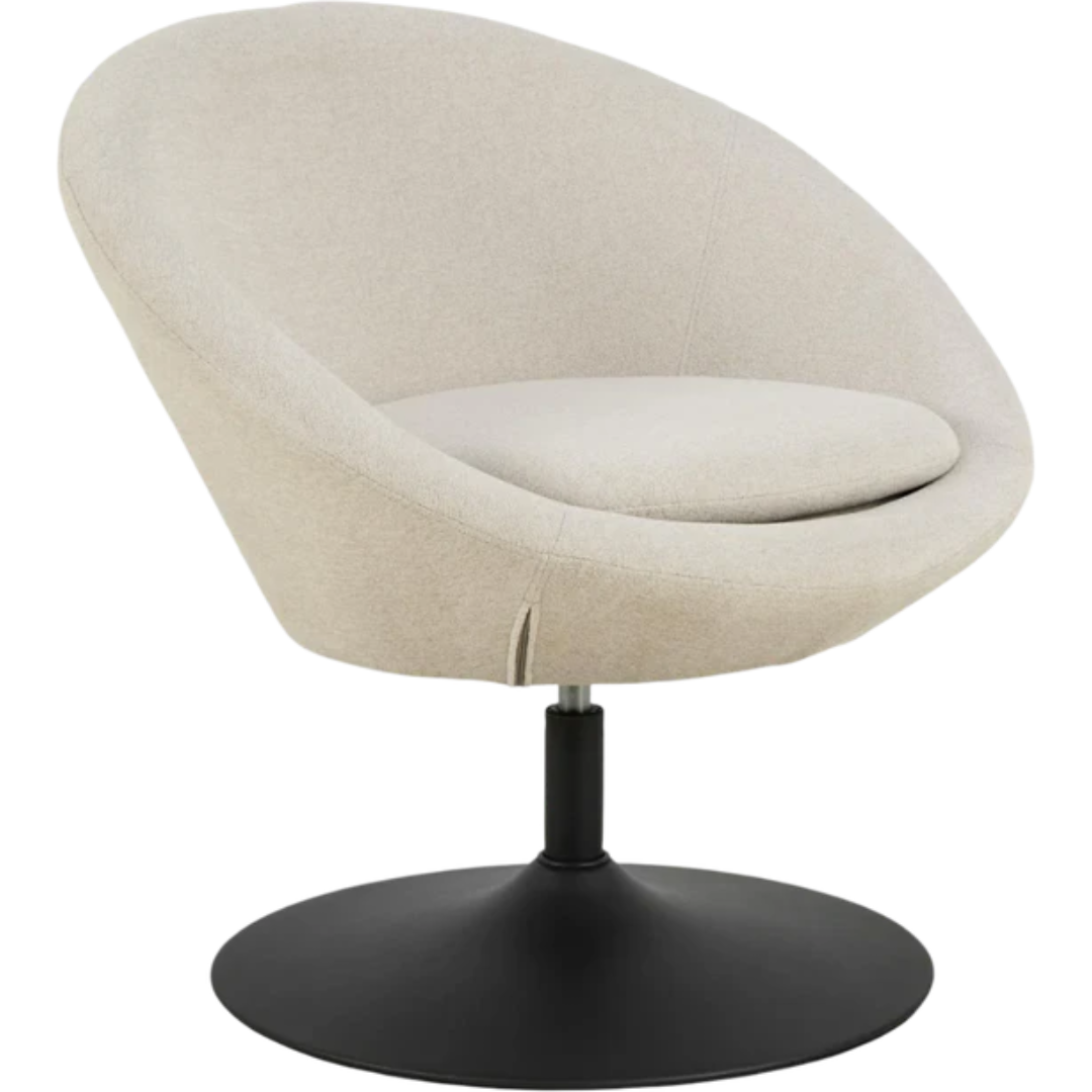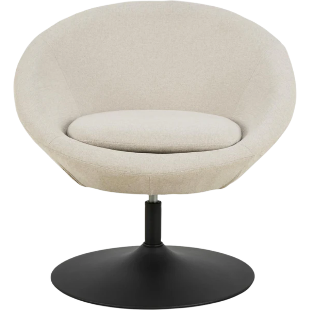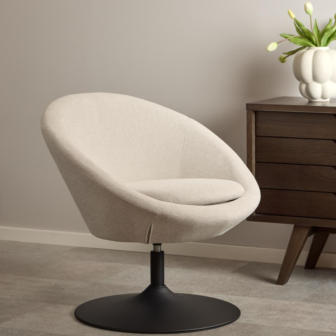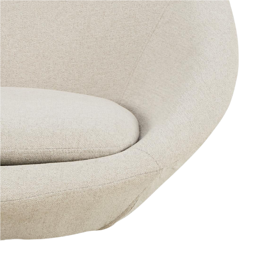 De fauteuil Yosin verenigt moeiteloos moderne elegantie met ultiem comfort. Met haar ronde vormgeving, zachte bekleding en draaibare onderstel is het een blikvanger én rustpunt in elk interieur.